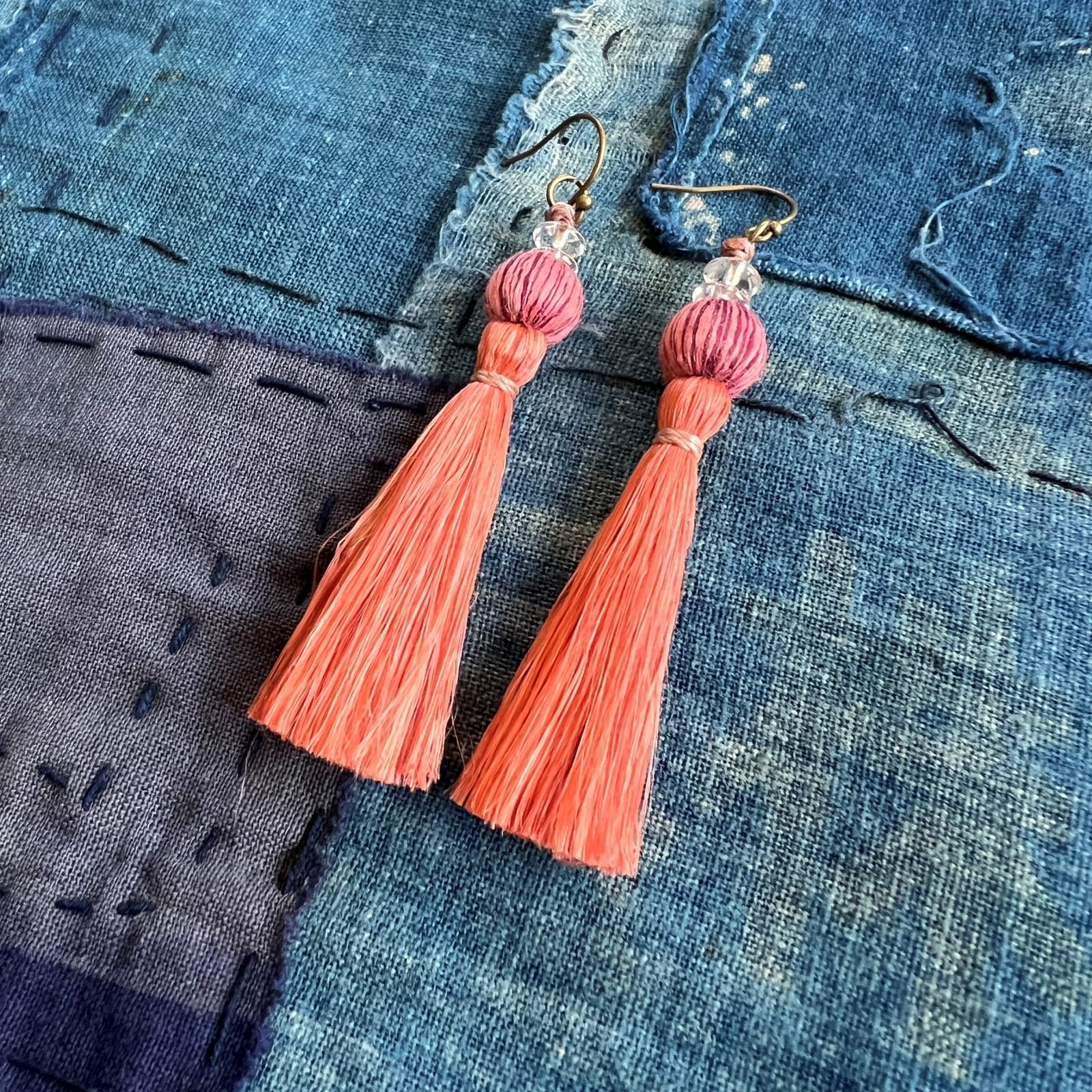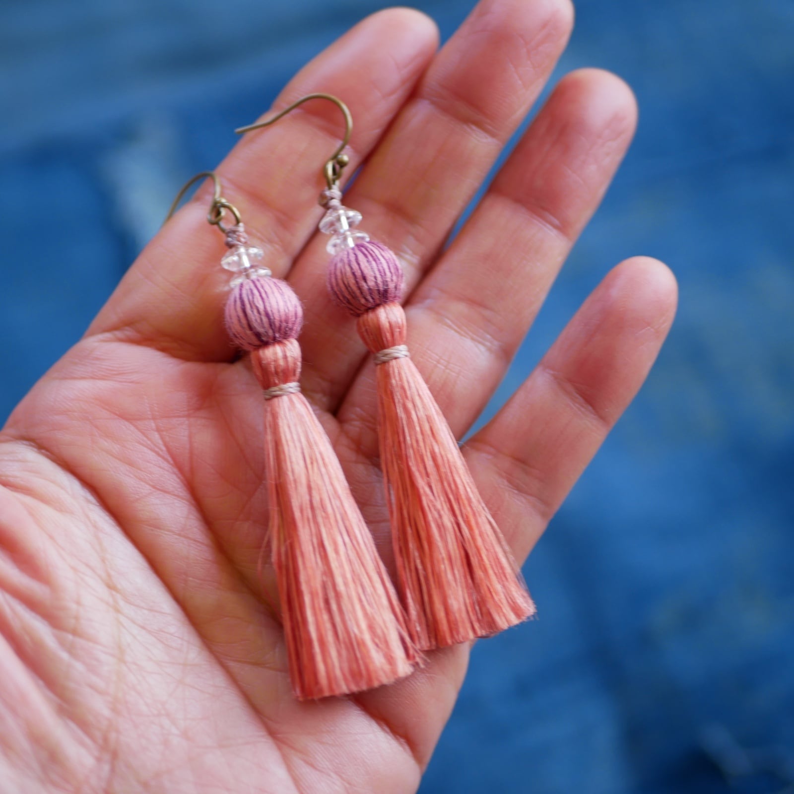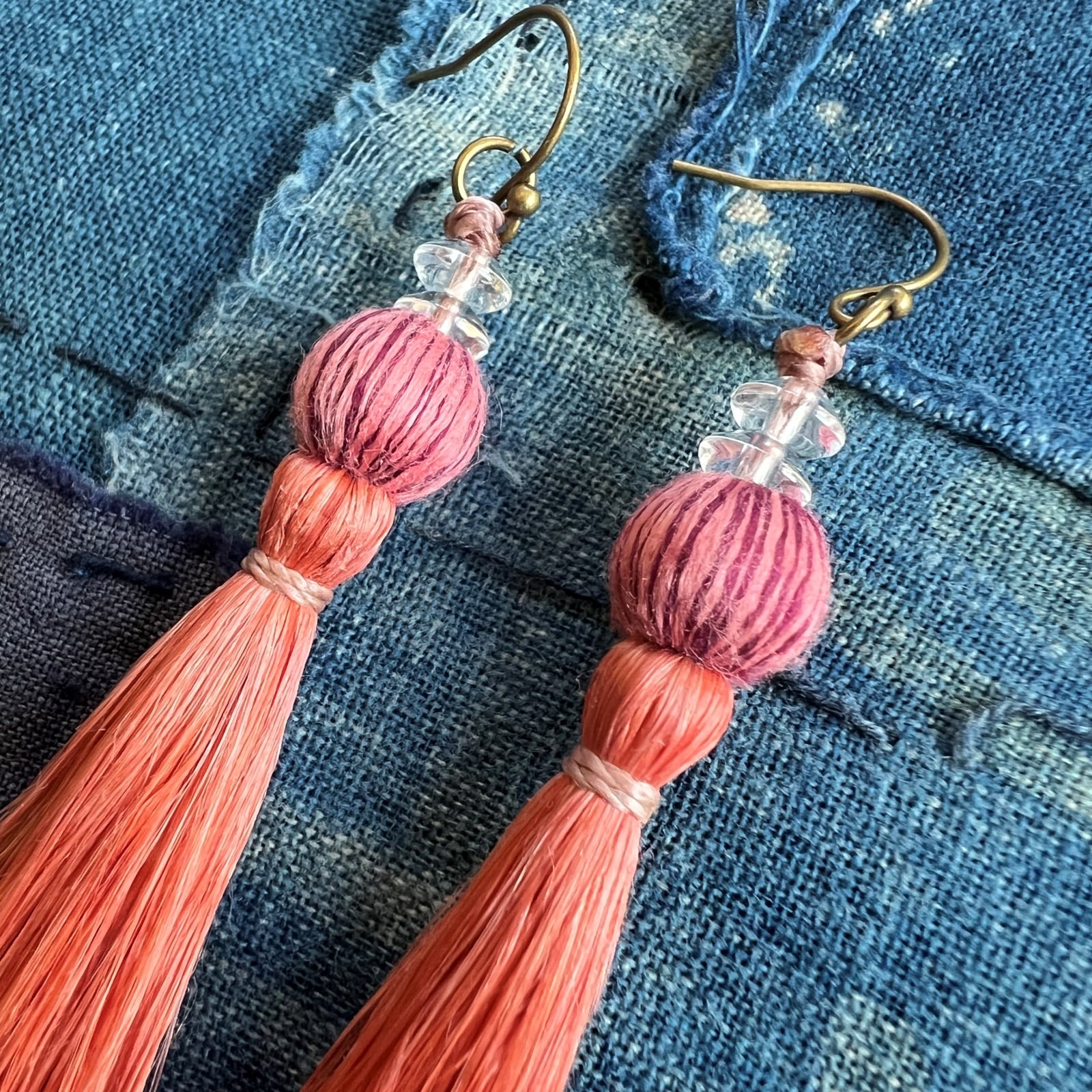 結城紬を織られている職人の方との「精麻」×「結城紬玉」のコラボ作品のアクセサリー始めました。