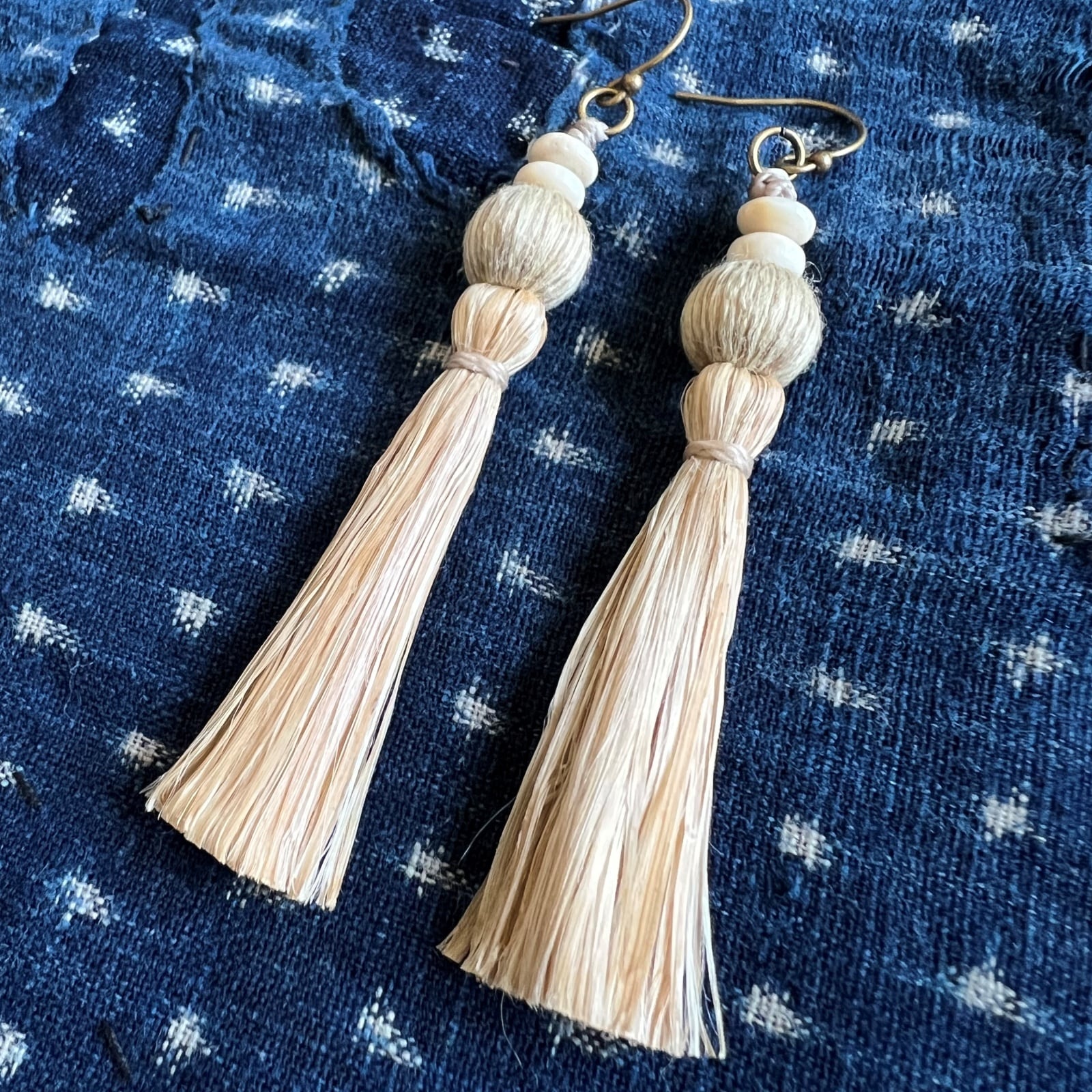 結城紬を織られている職人の方との「精麻」×「結城紬玉」のコラボ作品のアクセサリー始めました。