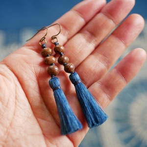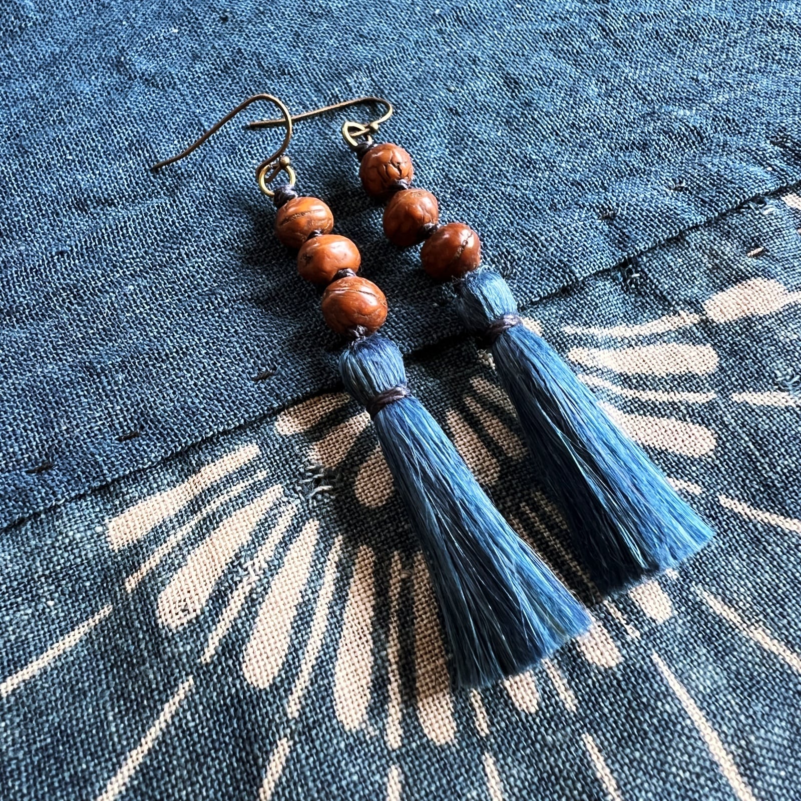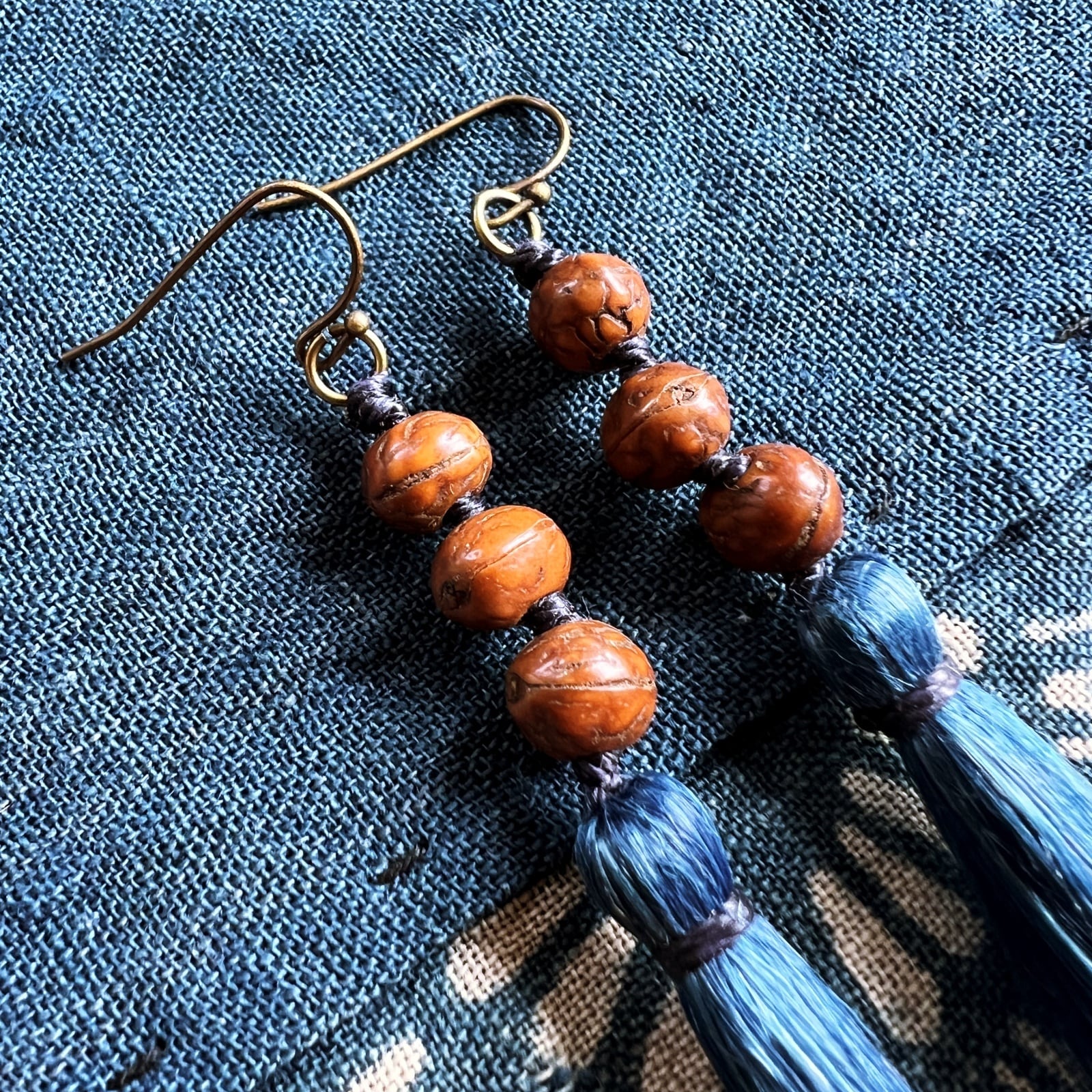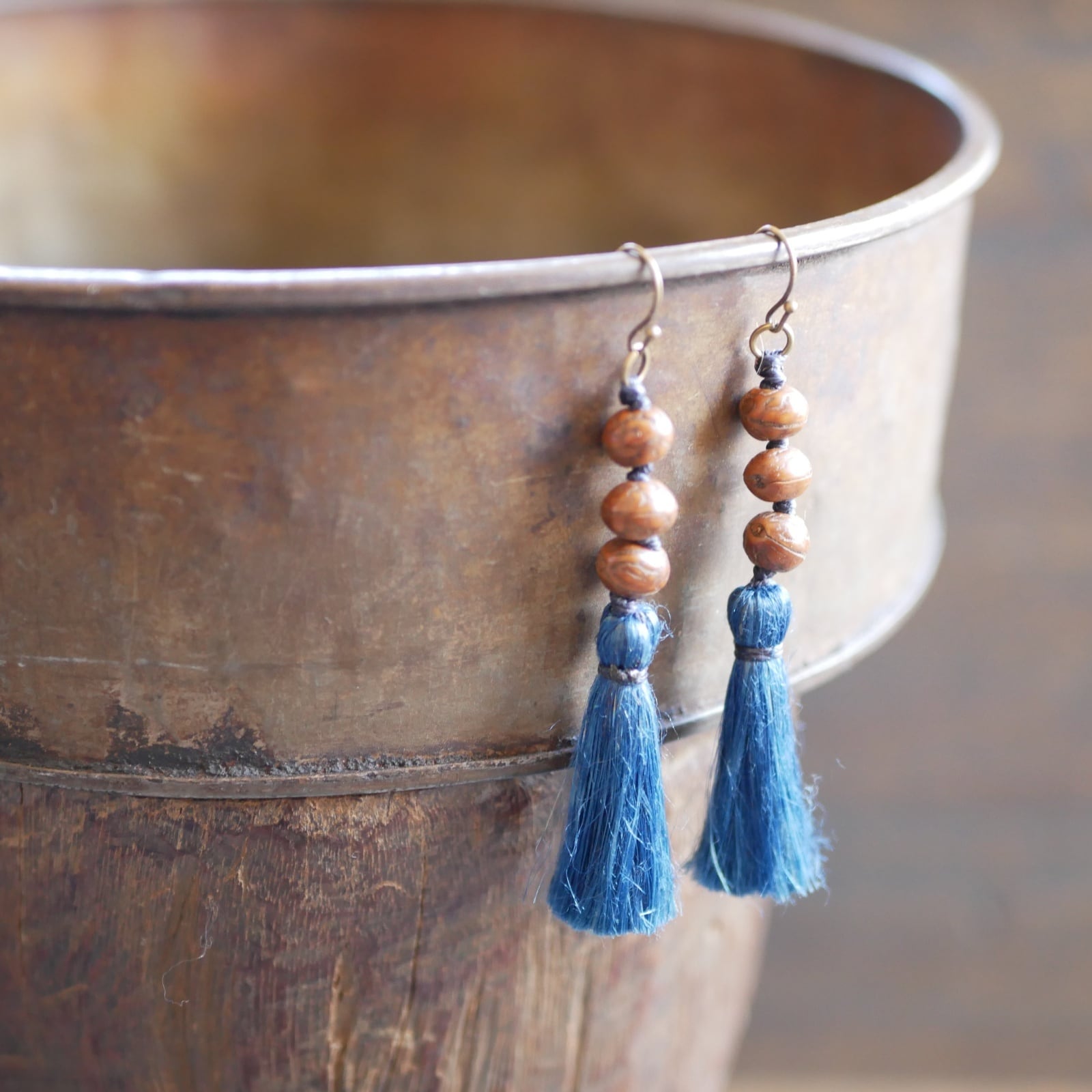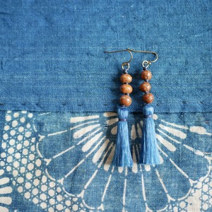 【 精麻 】 藍染精麻×ラクトゥ(菩提樹)ピアス