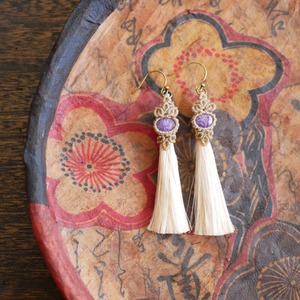 精麻を使用したこのピアスは、エネルギーを浄化し、新たな活力を呼び込むことでしょう。