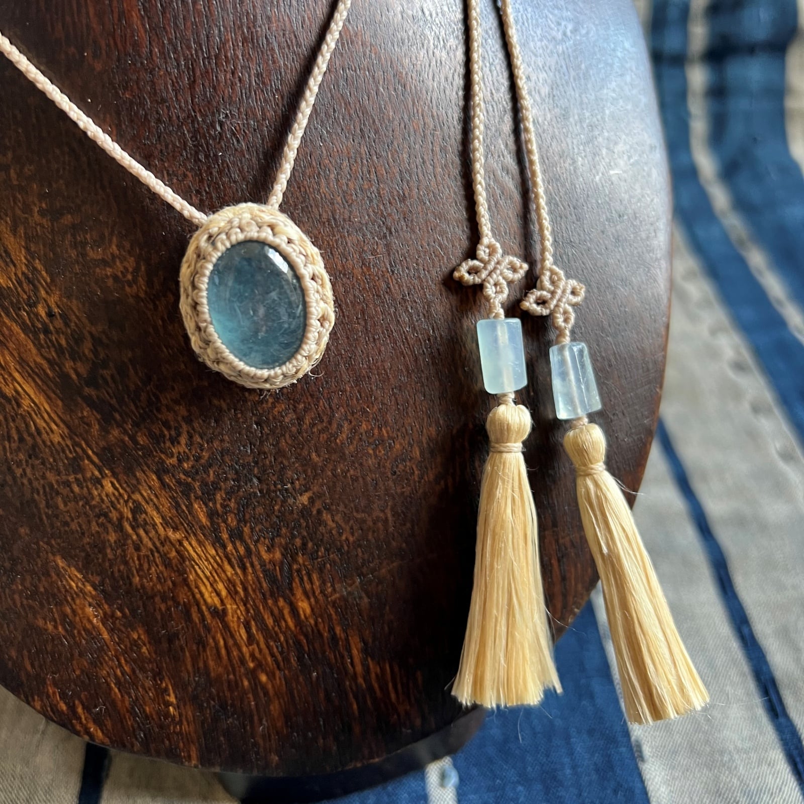 精麻とアクアマリンが生み出す独特のコントラストをぜひお楽しみください。
