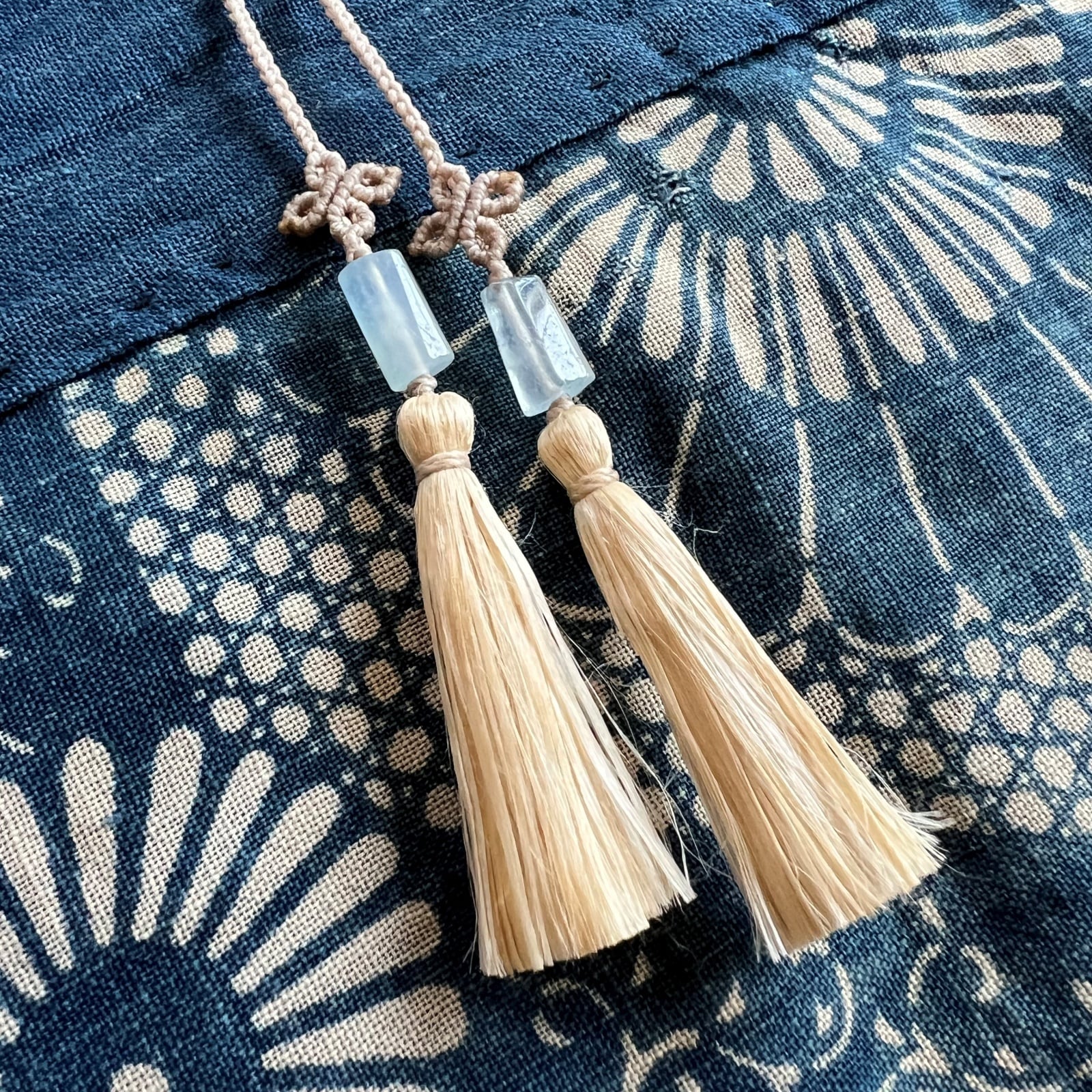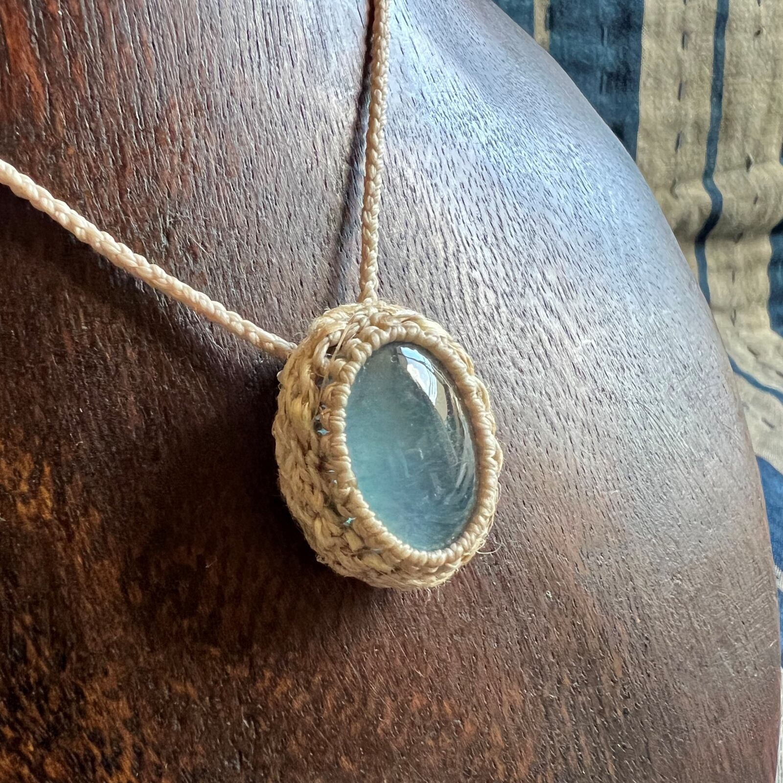 「精麻」と「アクアマリン」の瑞々しい美しさを併せ持つお守りペンダント、出来上がりました♪