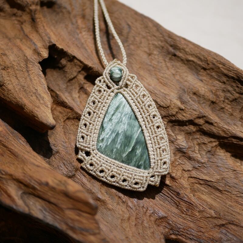 癒しの天使 【マクラメ】 大ぶりセラフィナイト・ペンダント