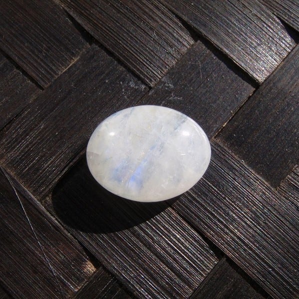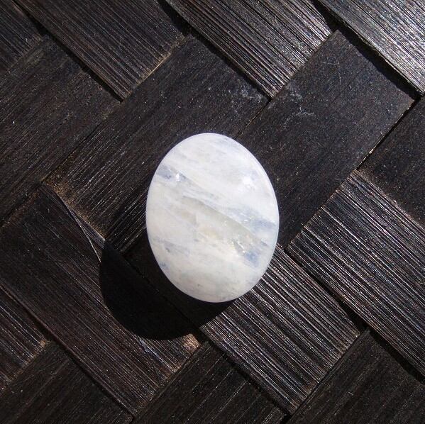 この石は、ムーンストーン(正長石)ではなく、ラブラドライト(斜長石)に属する石なので、ホワイトラブラドライト。